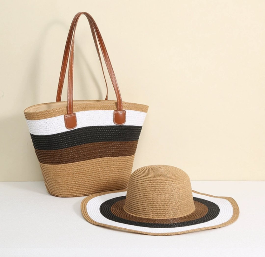 Straw beach bag with matching sun hat — stylish, spacious, and perfect for summer getaways.