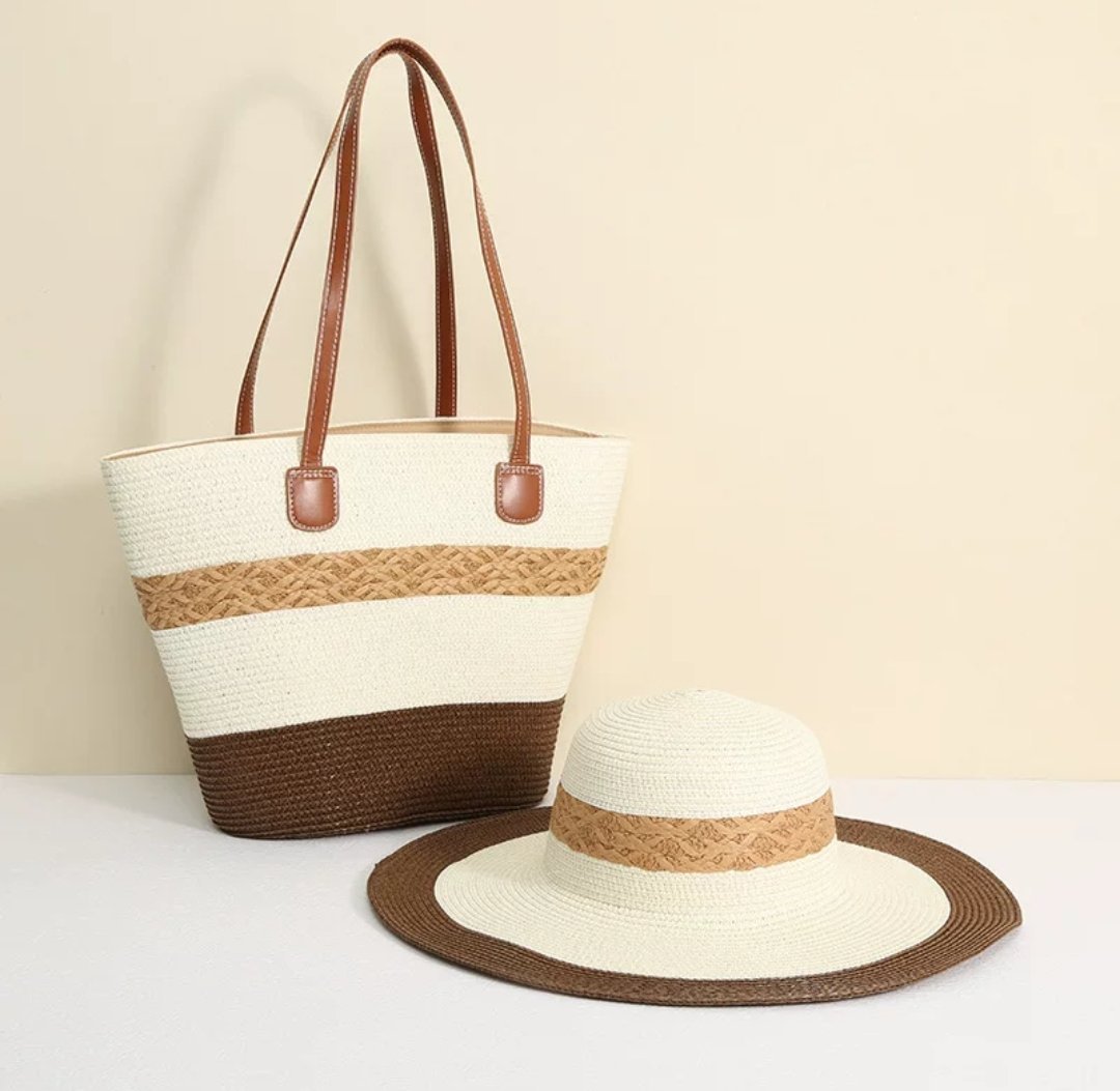 Straw beach bag with matching sun hat — stylish, spacious, and perfect for summer getaways.